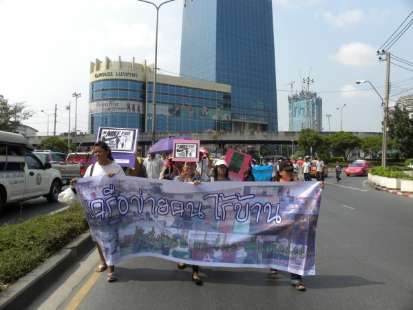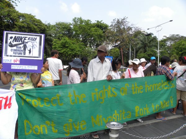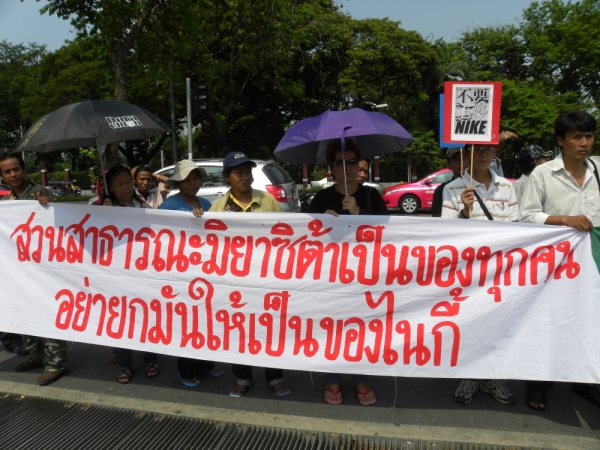 On a different subject, we wanted to share with you that Four Regions Slum Network held a solidarity action, marching to the Japanese embassy in Bangkok, demonstrating, and submitting a petition yesterday, 31 March, in support of homeless friends living in Miyashita Park, Shibuya Ward, Tokyo, who will be evicted by the park’s conversion into Nike Park. A first secretary from the Japanese embassy, Mr. Suzuki Rikio, accepted the petition and promised to send it to the Foreign Ministry in Tokyo, to be forwarded to Shibuya Ward.